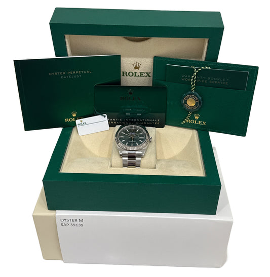 2024 PAPERS Rolex DateJust 41mm MINT GREEN 18K Steel Fluted OYSTER 126334 BOX