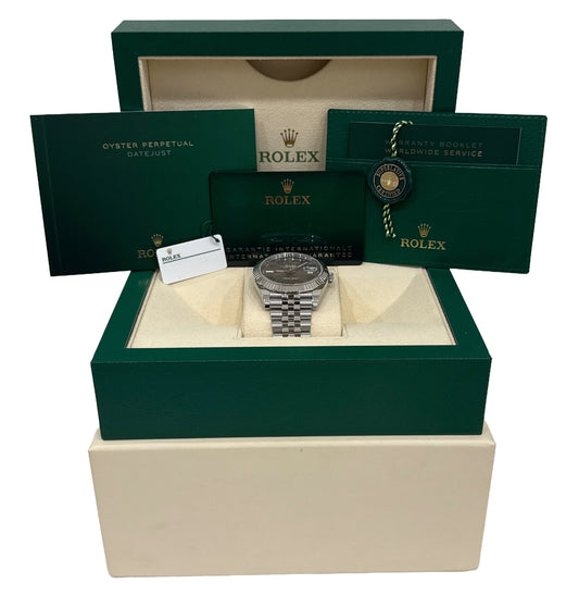2024 PAPERS Rolex DateJust 41mm BLACK Steel 18K Gold Fluted JUBILEE 126334 BOX