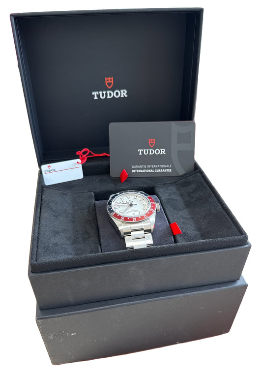 2024 PAPERS Tudor Black Bay 41 GMT 41mm White PEPSI Red Blue Steel 79830 RB BOX