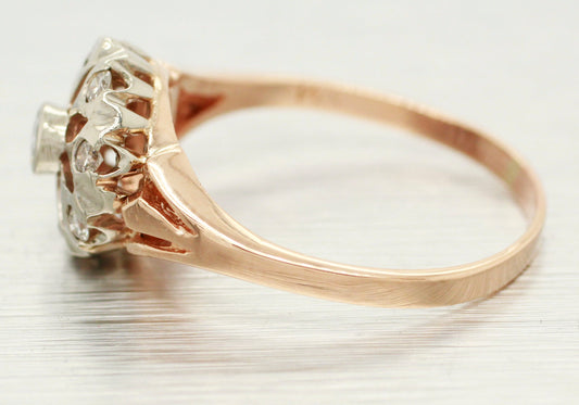 Antique Art Deco 0.15ctw Diamond Floral Band Ring - 14k Rose Gold