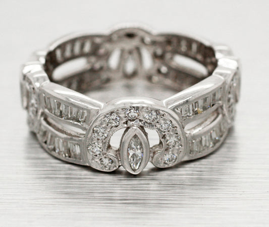 Antique 1.28ctw Channel-Set Diamond Eternity Band Ring - 18k White Gold