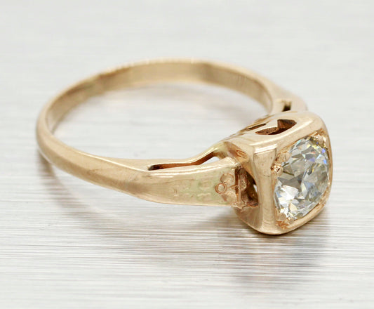 Antique 0.50ct Diamond Solitaire Ring | Square Bezel Set - 14k Yellow Gold