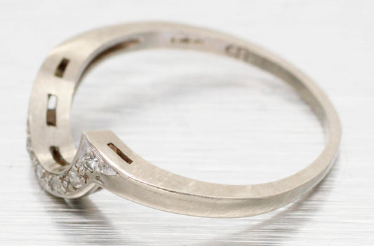 Antique Art Deco 0.07ctw Diamond Curved Band Ring - 14k White Gold - Size 6.5