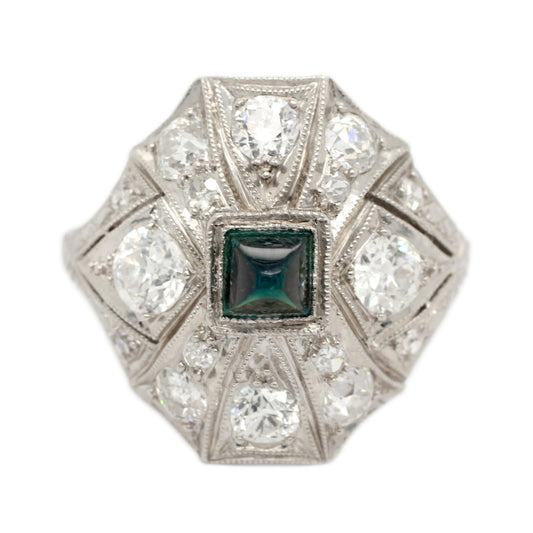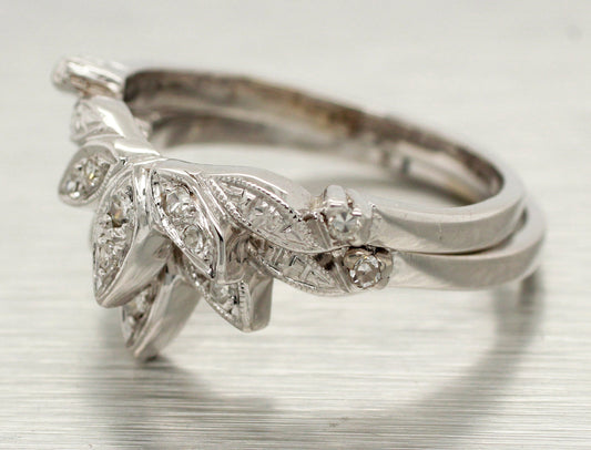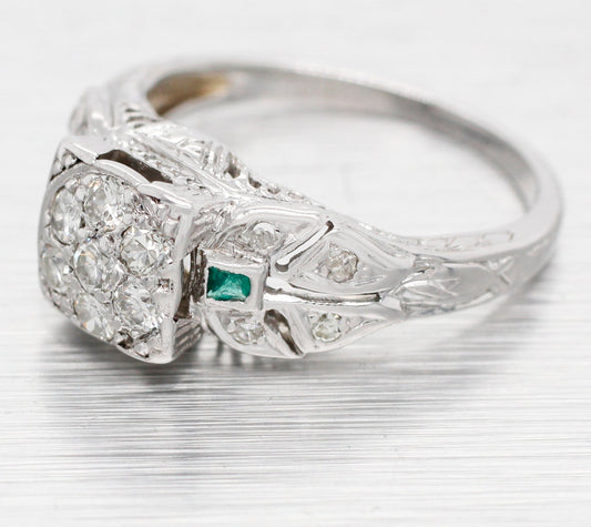 Antique Art Deco 0.25ctw Diamond & Emerald Nature Band Ring - 14k White Gold