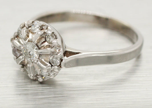 Antique Art Deco 0.40ctw 7-Petal Diamond Flower Ring - 14k White Gold - 6.50