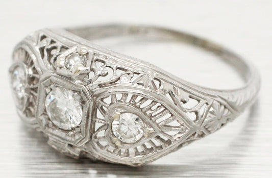 Antique Art Deco 0.40ctw Diamond Three Stone Band Ring - 18k White Gold