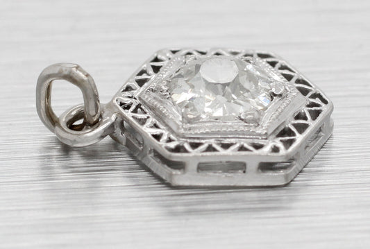 Antique Art Deco 0.50ct Diamond Hexagon Charm - 14k White Gold Filigree Setting