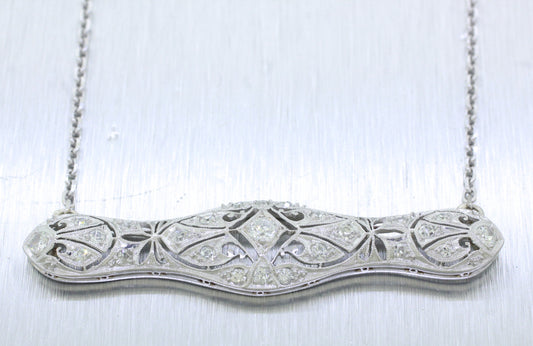 Antique Art Deco 14k White Gold 1.25ctw Diamond Filigree Conversion Pendant 18"