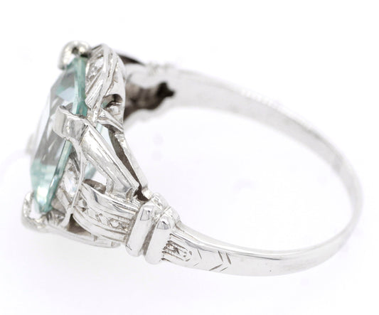 Antique Art Deco 3.00ct Aquamarine & Diamond Engagement Ring in 14k White Gold
