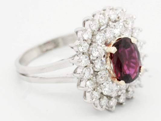 Antique Art Deco 1.20ct Rubellite & Diamond Cocktail Ring - 18k White Gold