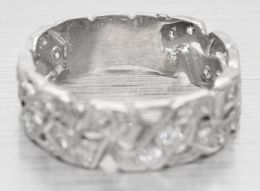 Antique Art Deco 1 ctw Diamond Braided Men's Wedding Band Ring - 14k White Gold