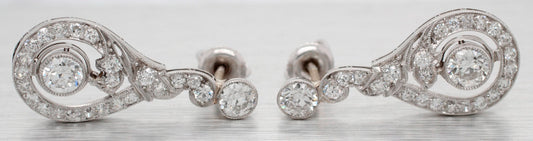 Antique Art Deco 2.00ctw Diamond Curved Statement Stud Earrings - 14k White Gold
