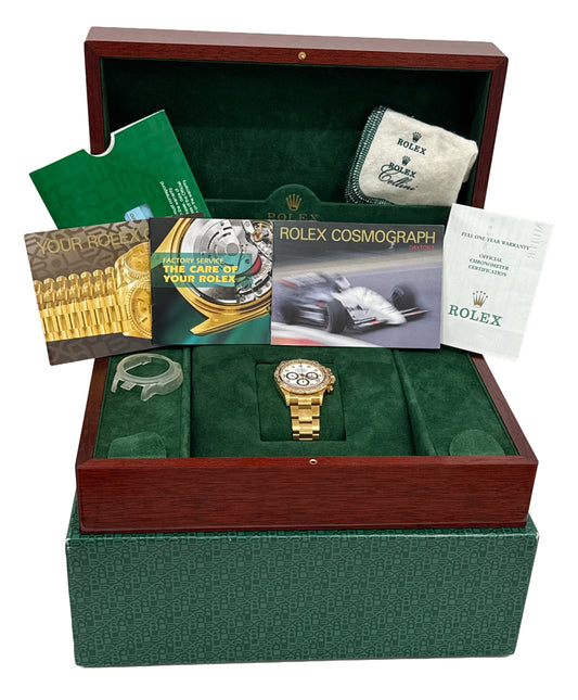 1999 TOP CONDITION PAPERS Rolex Daytona FACTORY BAGUETTE 18K GOLD 16568 BOX
