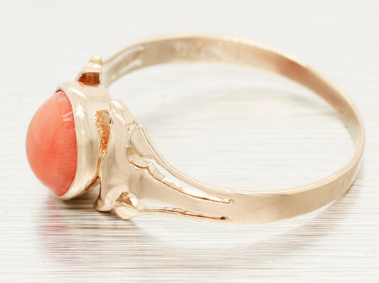 Antique Art Nouveau Angel Skin Coral Solitaire Ring - 14k Yellow Gold Size 8.75