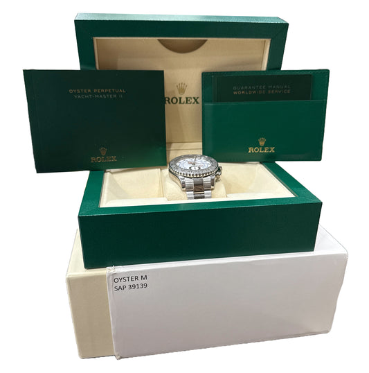 MERCEDES HANDS Rolex Yacht-Master II 44mm 116689 18K White Gold Platinum Watch