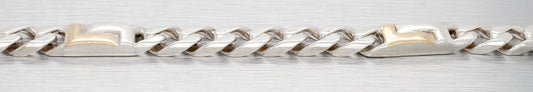 Men's Sterling Silver Curb Chain Bracelet - 18k Yellow Gold Accents - Size 8.50"
