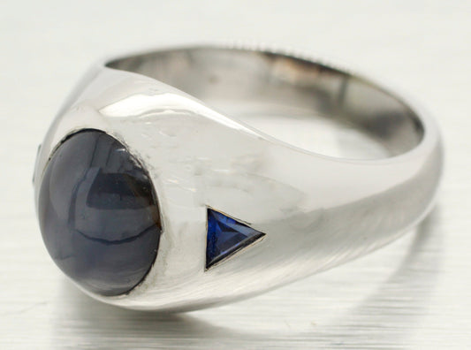 Men's Modern 7ct Blue Star Sapphire Band Ring - 18k White Gold | Size 10.5