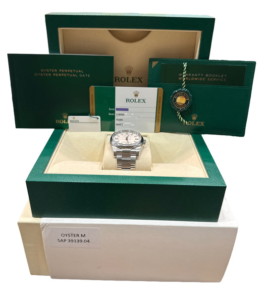 2020 PAPERS Rolex Oyster Perpetual 36mm WHITE Stainless Steel Watch 116000 BOX