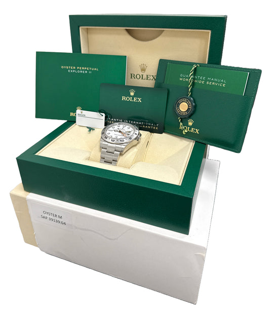 2020 PAPERS Rolex Explorer II 42mm 216570 POLAR WHITE Orange Steel GMT Watch BOX