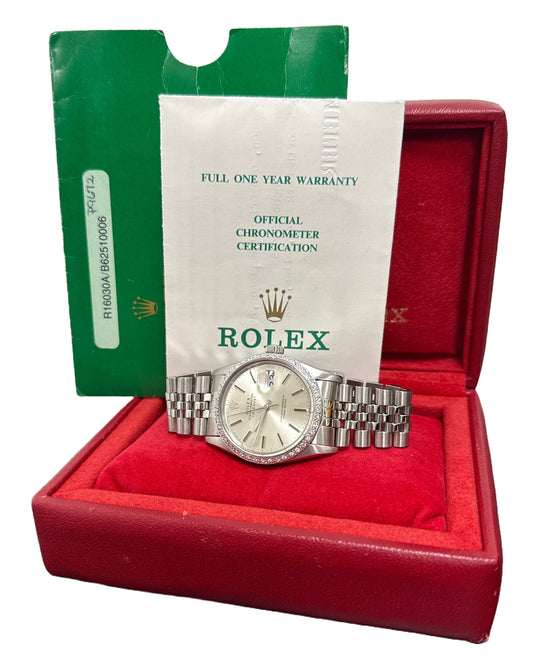 MINT PAPERS Rolex DateJust 36mm SILVER DIAMOND Stainless JUBILEE Watch 16030 BOX