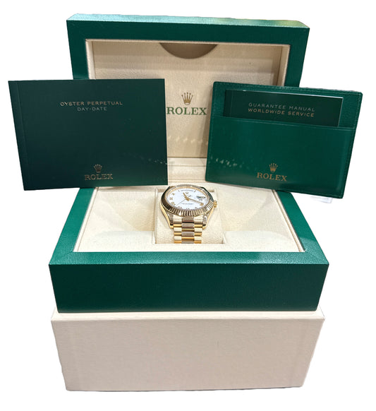 MINT Rolex Day-Date II President 41mm WHITE ROMAN 18K Yellow Gold 218238 BOX