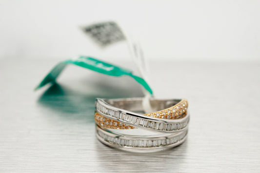 NEW Effy Duo 14k Two Tone Gold 0.74ctw Diamond Crossover Band Ring MSRP $3450