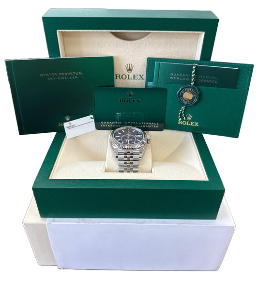 NEW PAPERS Rolex Sky-Dweller BLUE Steel JUBILEE Fluted 18K Gold 42mm 326934 BOX