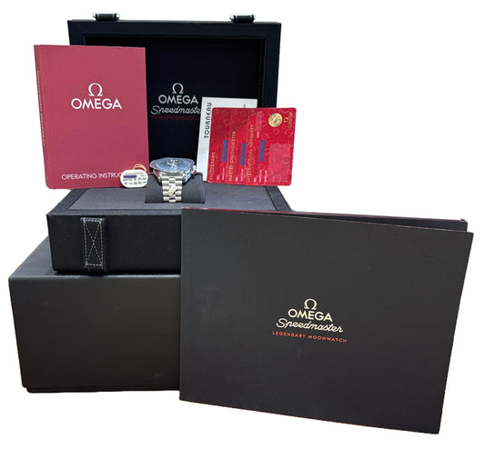 NEW PAPERS Omega Speedmaster Moonwatch DOMINO 42mm Steel 310.30.42.50.01.001 BOX