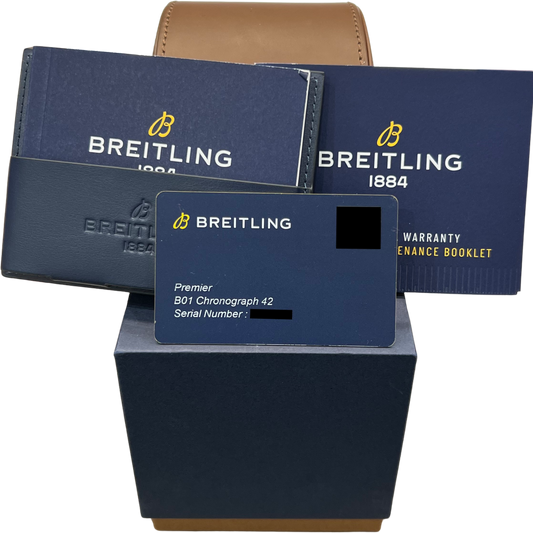 PAPERS Breitling Aviator B01 Chronograph BLUE Stainless Steel 43mm AB0119 BOX