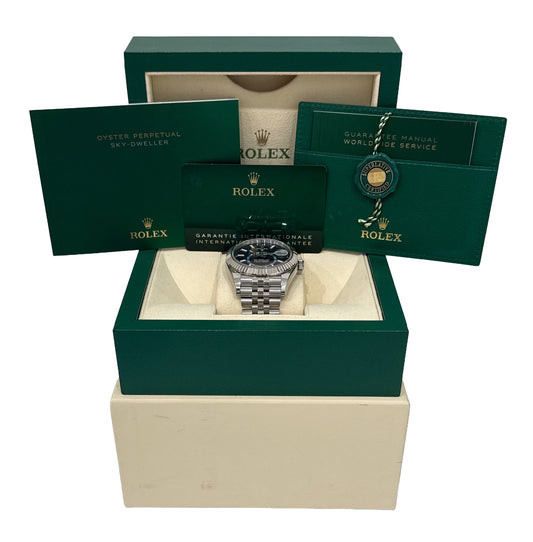 2022 PAPERS Rolex Sky-Dweller BLUE Steel 18K White Gold 42mm JUBILEE 326934 BOX