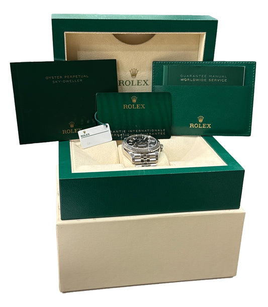 2022 PAPERS Rolex Sky-Dweller BLACK Steel 18K White Gold 42mm JUBILEE 326934 BOX
