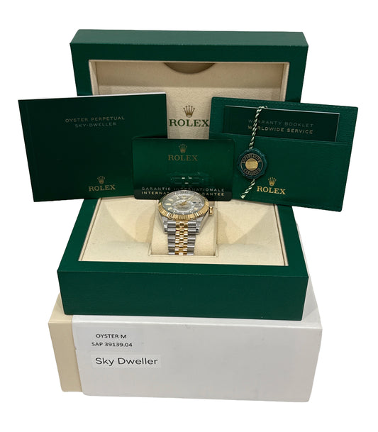2022 PAPERS Rolex Sky-Dweller WHITE 18K Gold Stainless JUBILEE 42mm 326933 BOX