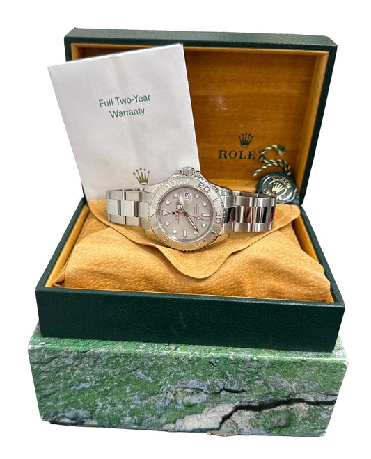 PAPERS Rolex Yacht-Master Mid-Size Platinum Stainless 35mm 168622 Watch BOX