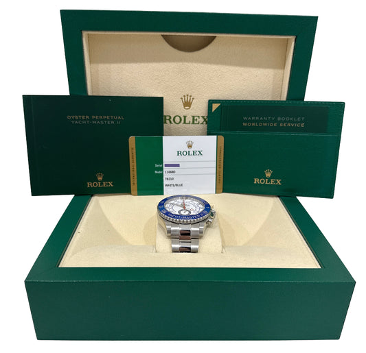 PAPERS Rolex Yacht-Master II 44mm Blue White Stainless Steel Watch 116680 BOX