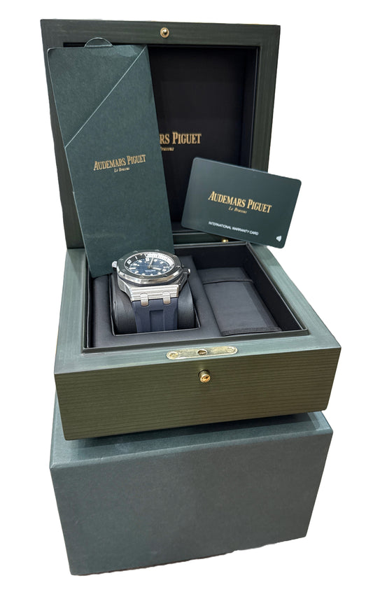 2025 PAPERS Audemars Piguet Royal Oak Offshore Steel BLUE 42mm 15720ST Watch BOX