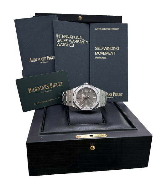 PAPERS Audemars Piguet Royal Oak Gray RHODIUM Stainless 41mm 15500ST Watch BOX