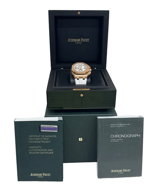 Audemars Piguet Royal Oak Chronograph WHITE 18k Rose Gold Leather 39mm 26022OR