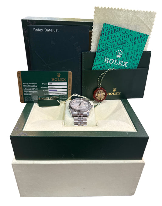 UNPOLISHED PAPERS Rolex DateJust 36mm SILVER Steel JUBILEE 18K Gold 116234 BOX