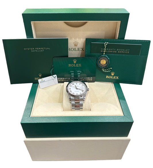 2025 PAPERS Rolex DateJust 41 WHITE ROMAN 18K Gold 41mm OYSTER 126334 Watch BOX