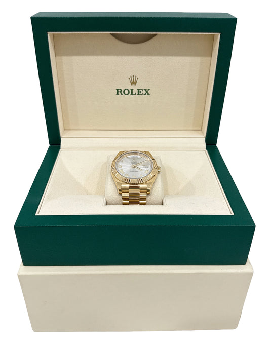 The Rolex Day-Date, known as the "President," is a prestigious timepiece introduced in 1956, celebrated for its elegance and innovation. It was the first watch to display both the date and the day of the week in full. Crafted exclusively in precious metals, it’s favored by influential figures worldwide, symbolizing luxury, status, and timeless sophistication.