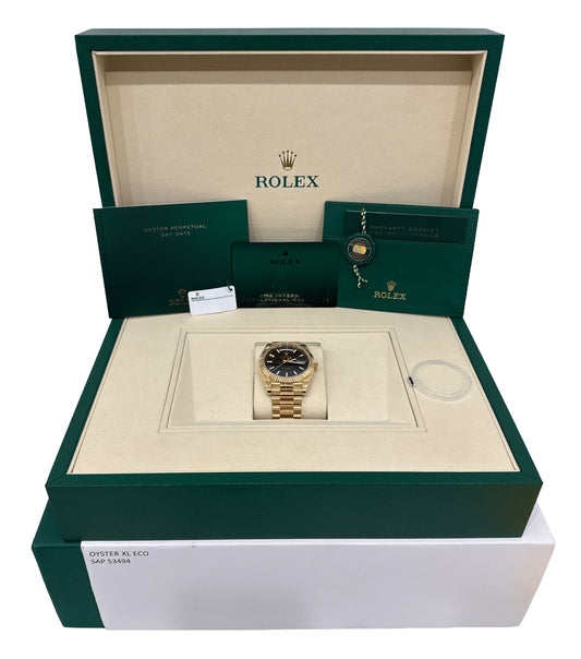 2024 PAPERS Rolex Day-Date President 40mm BLACK 18K Yellow Gold 228238 Watch BOX