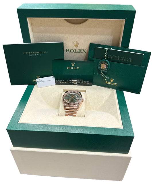 2024 PAPERS Rolex Day-Date President 40mm OLIVE GREEN 18K Rose Gold 228235 BOX