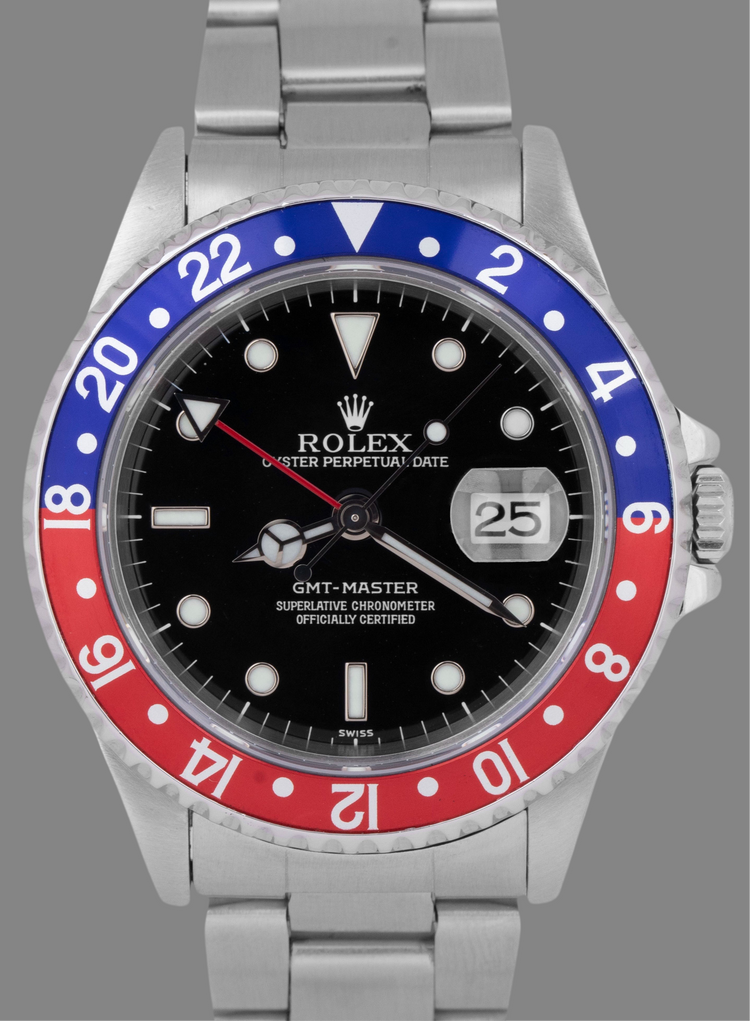 Rolex GMT-Master Black Red Date MATTE Stainless Steel PATINA 40mm Oyster 16750