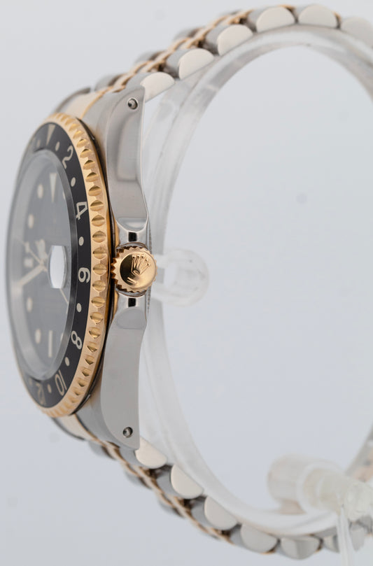Rolex GMT-Master Black 40mm Nipple Two Tone 18K Yellow Gold Jubilee Watch 16753