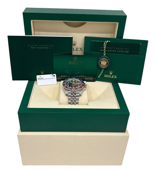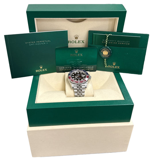 PAPERS Rolex GMT-Master II 40mm PEPSI Red JUBILEE Stainless 126710 BLRO BOX