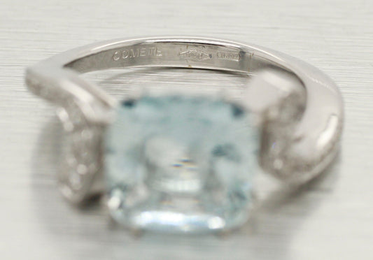 Comete 3ct Aquamarine Cocktail Ring - Diamond Accents - 18k White Gold Setting