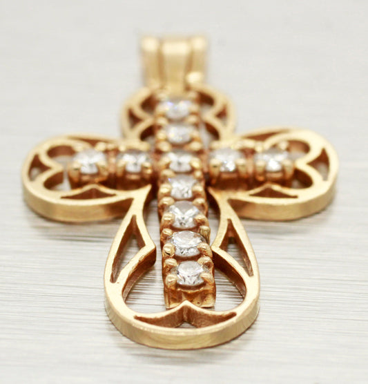 Vintage 0.55ctw Diamond Cross Pendant - 14k Yellow Gold Charm in Bezel