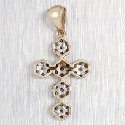 Vintage 0.50 ctw Diamond Cluster Cross Pendant - 14k Yellow Gold - Floral Motif