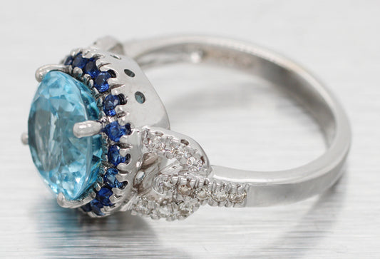 Round Blue Topaz, Sapphire, and Diamond Cocktail Ring - 14k White Gold - Size 7Vendor:BaldwinRegular price $699.99 USDRegular priceUnit price per-