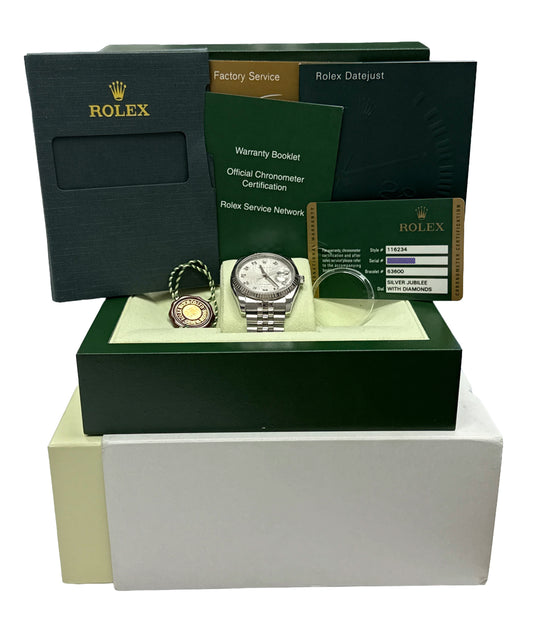 PAPERS Rolex DateJust 36mm SILVER JUBILEE DIAMOND Stainless Steel 18K 116234 BOX